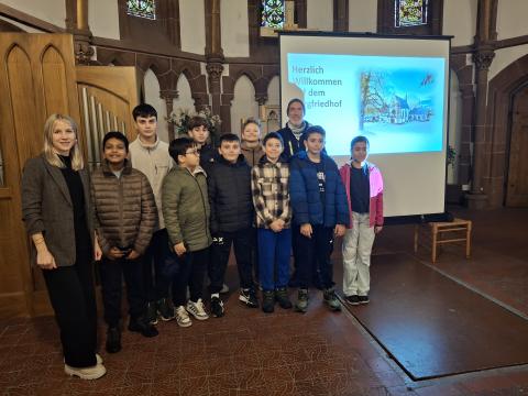 VKL besucht den Bergfriedhof 20. Oktober 2025 Heute hat die Vorbereitungsklasse (VKL) zusammen mit Herrn Dieterle den Bergfriedhof besucht. Es war in Kooperation mit dem Hospizverein Lahr und dem Friedhofsamt ein kleines Pilotprojekt der Stadt.
