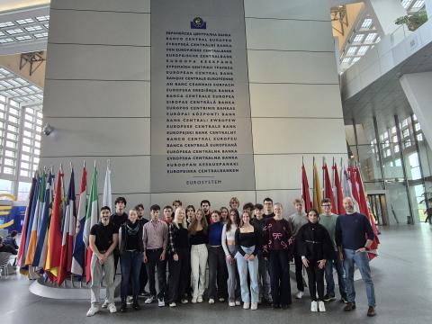 Der zweite Tag stand ganz im Zeichen des Geldes. Am Vormittag besuchten die Kurse die Europäische Zentralbank (EZB), wo Einblicke in die Geldpolitik, den Euro und die Rolle der EZB im europäischen Finanzsystem gewonnen wurden. Anschließend ging es weiter zur Frankfurter Wertpapierbörse. Hier konnten die Schülerinnen und Schüler live erleben, wie Aktien gehandelt werden und wie die Märkte miteinander verflochten sind – weitere anschauliche Beispiele für die im Unterricht zu behandelnden Großthemen Internationale Finanzmärkte und Grundlagen der Betriebswirtschaftslehre.