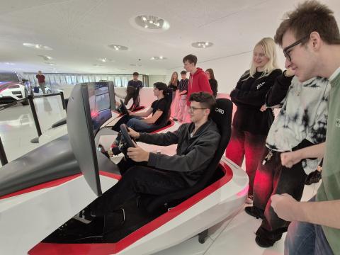 Der Start in die Exkursion war früh: Bereits um sechs Uhr morgens ging es mit dem Zug Richtung Stuttgart. Nach der Ankunft wartete ein besonderes Highlight – der Besuch des Porsche-Museums in Zuffenhausen. Zwischen glänzenden Karosserien und legendären Fahrzeugmodellen wurde die Unternehmensgeschichte greifbar. Noch spannender war der anschließende Blick hinter die Kulissen: Bei der Werksführung konnten die Schülerinnen und Schüler den Entstehungsprozess des legendären 911ers Schritt für Schritt mitverfolgen. Vom effizienten Produktionsablauf bis hin zu modernsten Fertigungstechniken zeigte sich, wie betriebswirtschaftliche Prinzipien – wie etwa Just-in-time-Produktion oder Qualitätsmanagement – in deutschen Fabriken umgesetzt werden.