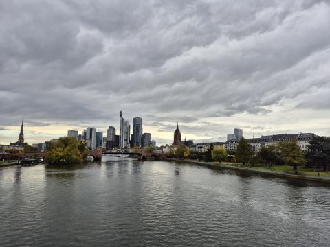 Am Nachmittag sollte es weiter nach Frankfurt gehen – doch wie so oft bei Bahnreisen kam es anders als geplant. Eine Zugverspätung stellte die Gruppe auf die Probe. Dank einer spontanen und recht abenteuerlichen Taxifahrt – zwei Taxifahrer standen dabei kurz vor einer Prügelei – quer durch die Frankfurter Innenstadt wurde das Ziel, die Jugendherberge, rechtzeitig erreicht. Nach dem Essen blieb noch Zeit, den Frankfurter Abend zu erkunden. Dabei stets im Blick: die eindrucksvolle Frankfurter Skyline.