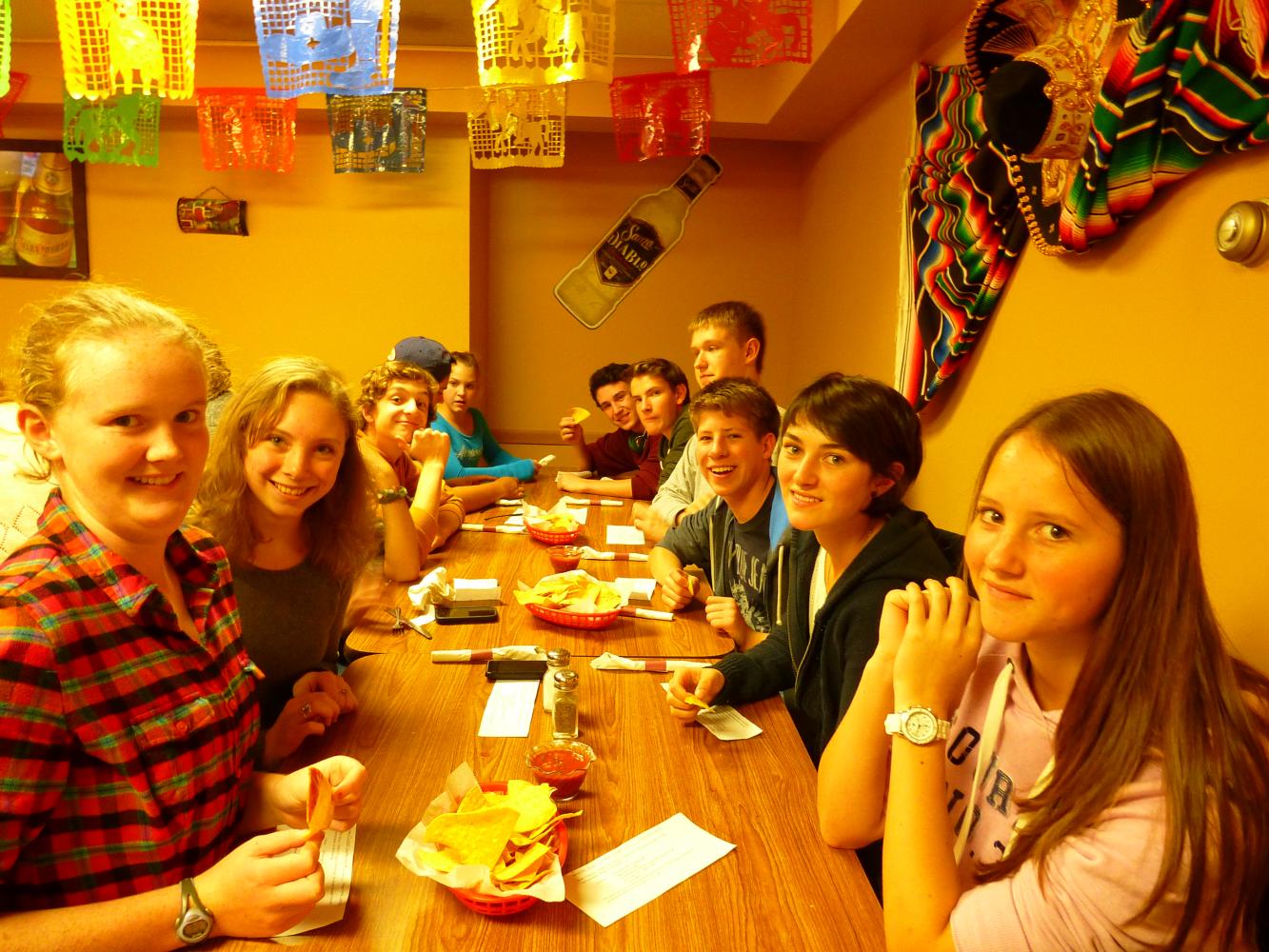 At 4:40 pm, we all met at the bus and we went back to Northfield. We ate there in a nice restaurant called "El Tequila?. You can eat Mexican food there, for example: Enchiladas, Tacos, and many other things?
