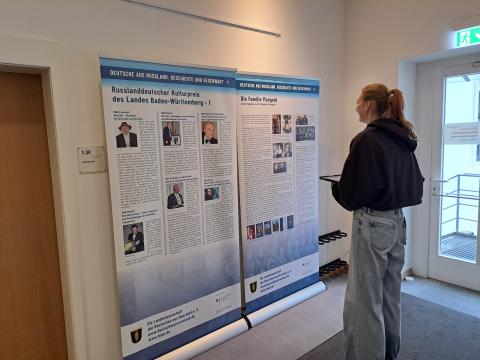 Geschichte wird oft als etwas Vergangenes betrachtet – doch manchmal begegnet man ihr ganz direkt. Als wir die Ausstellung „Deutsche aus Russland. Geschichte und Gegenwart“ besuchten, wurde uns bewusst, dass die Geschichten von Flucht, Heimatverlust und Neubeginn auch heute noch spürbar sind, sogar hier in Lahr. Am 22. Oktober 2025 besuchten wir, die Geschichtsbasiskurse der Jahrgangsstufe 11 des Max-Planck-Gymnasiums Lahr, gemeinsam mit Frau Mussler und Herrn Hellberg, diese Wanderausstellung. Sie wurde von der Landsmannschaft der Deutschen aus Russland e. V. gestaltet und informiert über die Geschichte der Russlanddeutschen, Nachfahren deutscher Siedler, die seit dem 18. Jahrhundert im Russischen Reich lebten, die über Jahrhunderte hinweg zwischen zwei Kulturen lebt(e).