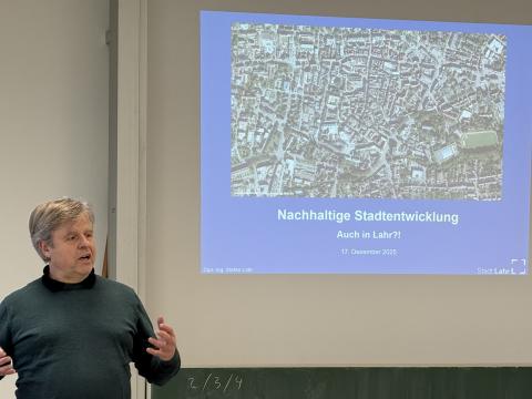 Löhr stellte Besonderheiten und Herausforderungen der Stadtplanung in Lahr heraus und berichtete, dass Transparenz und Bürgerbeteiligung in den letzten Jahren immer wichtiger geworden sind.