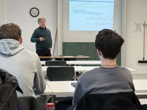 Zum wiederholten Male war Stefan Löhr, Leiter des Stadtplanungsamtes der Stadt Lahr, der Einladung ans MAX gefolgt und informierte den Geographiekurs der Jahrgangsstufe 2 (Kurs Geier) aus erster Hand. Der Fachmann berichtete aus seinem Arbeitsfeld und beleuchtete die Stadt und deren Veränderung aus seiner Perspektive. "Keine Stadt ist nachhaltig", so Löhr. Auch wenn man sich im Unterricht mit Paradebeispielen wie Kopenhagen beschäftigt, so dürfe man nie glauben, dass diese Städte auf allen Feldern nachhaltig seien.