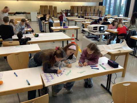 Am 12.12.25 nahmen alle 6.Klassen während jeweils 3 Schulstunden am Workshop „Klicksalat“ mit dem Medientrainer Jörg Kabierske teil. Zunächst brachten die Schülerinnen und Schüler in Partnerarbeit die zehn Gebote der digitalen Ethik (z.B. „Respektiere die Würde anderer Menschen und bedenke, dass auch online Regeln gelten.“) in eine für sie schlüssige Reihenfolge. Im Anschluss ging Herr Kabierske auf Fragen zu diesen Geboten ein und beantwortete diese mit Hilfe eindrücklicher Videos und Berichten aus eigener Erfahrung. Im Anschluss daran erhielten die Gruppen Einblicke in die Themen Jugendschutz, Rechtslage für Social-Media-Nutzende sowie Vor- und Nachteile der Nutzung von KI.