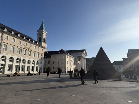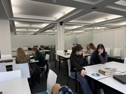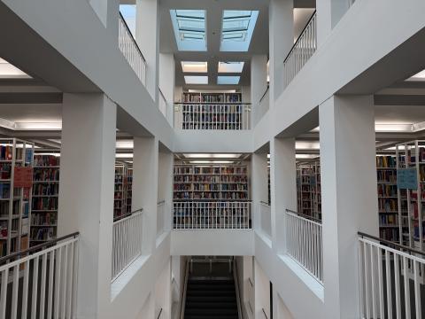 Der zweite Schwerpunkt des Kurses ist das wissenschaftliche Arbeiten. Auch auf diesem Feld gibt es eine bewährte Tradition, nämlich die Exkursion in den "Büchertempel", die Badischen Landesbibliothek in Karlsruhe, wo der Kurs einen speziell auf Seminarkurse zugeschnittenen Workshop absolvierte. Suchtechniken und das Erschließen wissenschaftlicher Literatur in einem auf den ersten Blick unüberschaubaren Fundus, die Nutzung von Datenbanken und das korrekte Zitieren sind Bestandteile des Workshops. Mit dieser Studienvorbereitung gehen die Teilnehmer einen großen Schritt in Richtung wissenschaftliches Arbeiten, schließlich wird im Rahmen des Seminarkurses auch eine wissenschaftliche Hausarbeit innerhalb des Rahmenthemas "Wirtschaftsjournalismus" angefertigt.