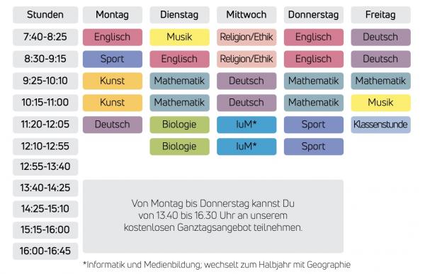 So könnte dein Stundenplan in Klasse 5 aussehen: